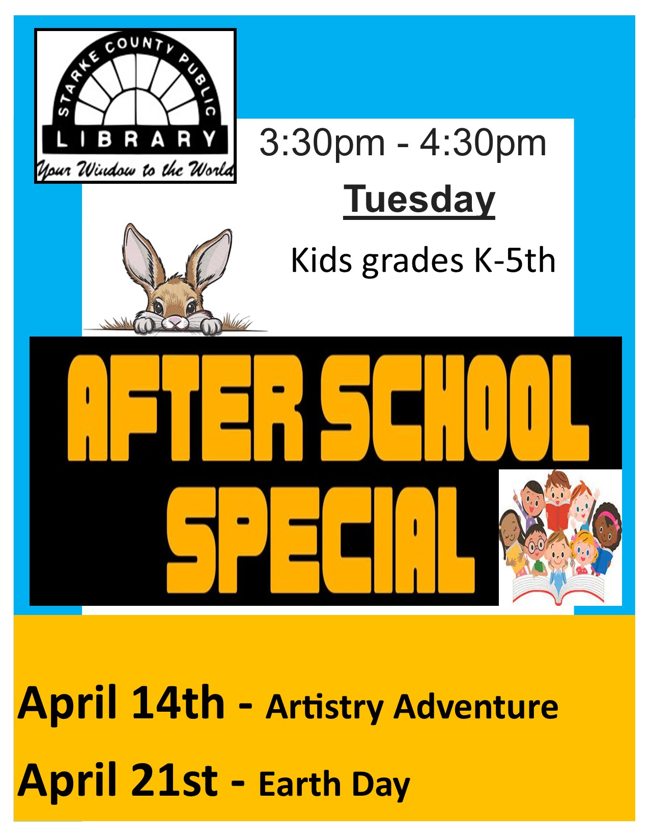 Event Date(s) Tue, Apr 14 2026, 3:30 - 4:30pm Tue, Apr 21 2026, 3:30 - 4:30pm Event Location Henry F. Schricker Branch Event Category Child Event Teen Event